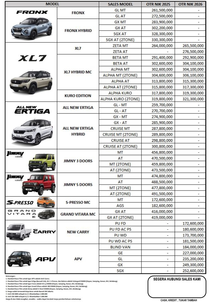Suzuki Grand Vitara kembali hadir dengan peningkatan memukau dan karakter yang tajam. Dilengkapi mesin yang efisien dengan Smart Hybrid Vehicle by Suzuki (SHVS). Jelajahi setiap rintangan dengan beragam fitur terkini. Grand Vitara merupakan komitmen Suzuki dalam menghadirkan SUV yang handal. Informasi lebih lanjut silahkan kontak Sales Suzuki Termurah kami berikan Promo Menarik ! Dan Pelayanan Terbaik…